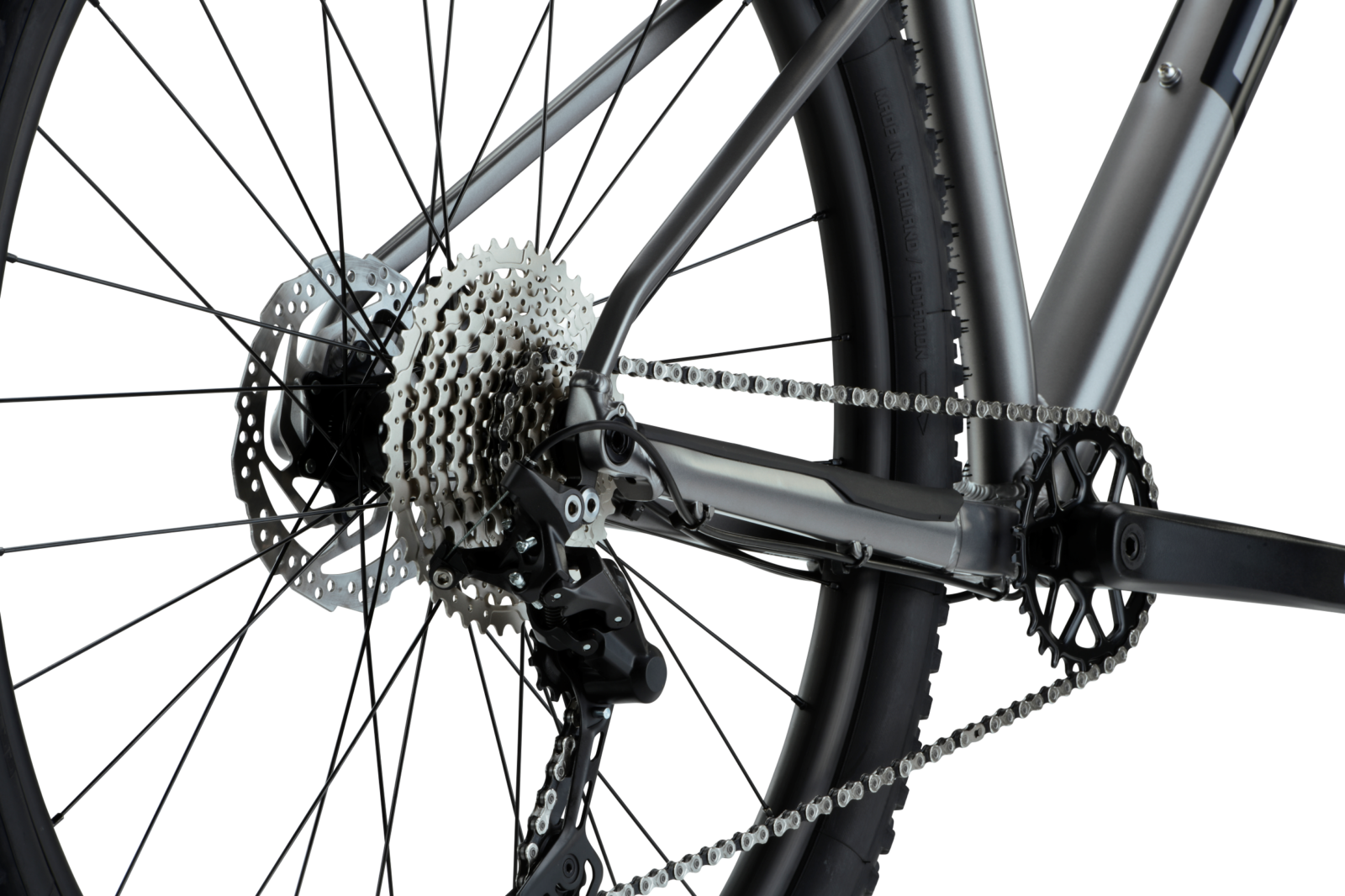 Делoви од Shimano Deore со 10-брзинска група и вилушка XCM на Suntour на XCD23 тркала и гуми WTB Ranger Comp 2,25″.