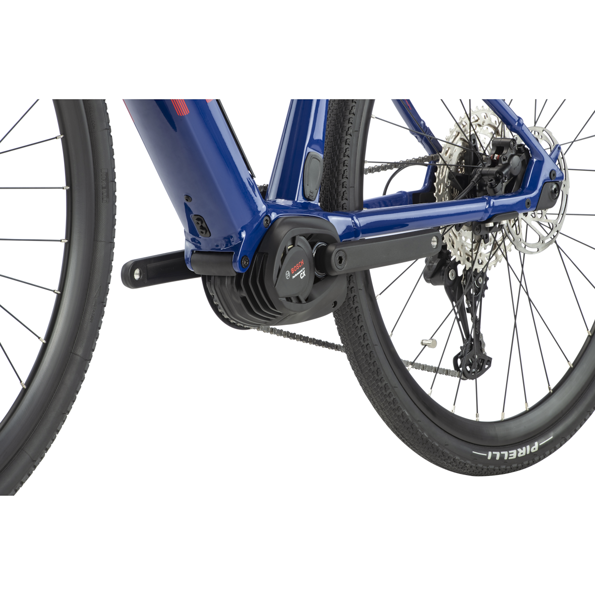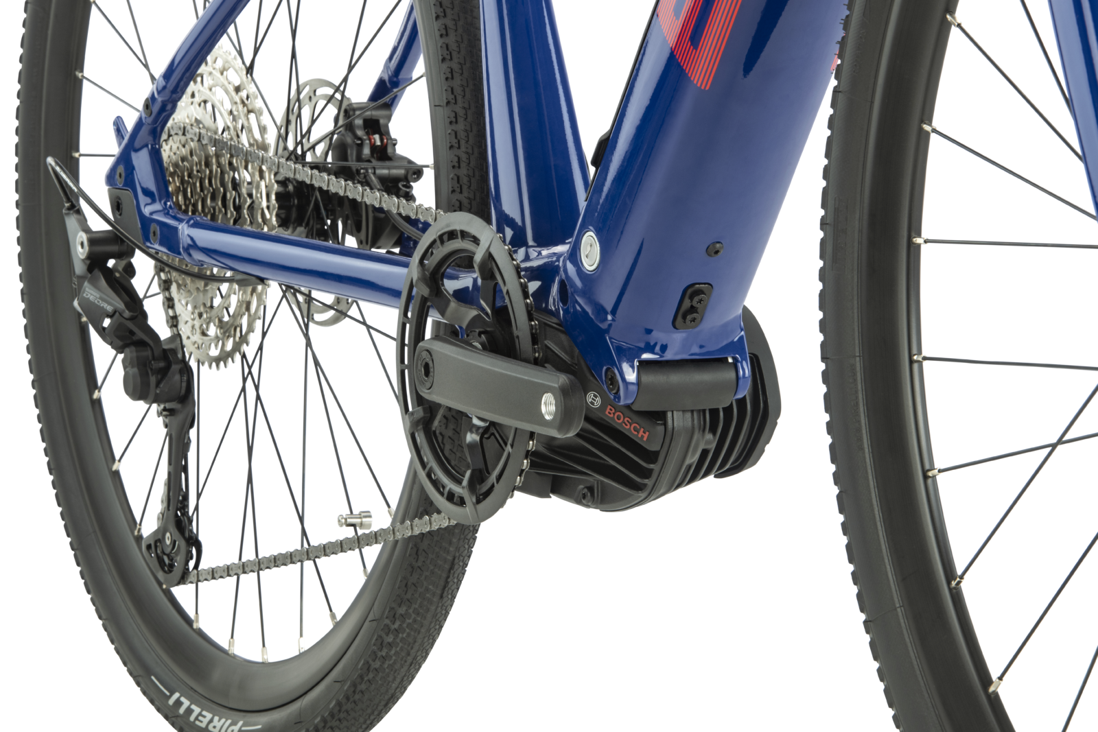 Alpenchallenge AMP AL ONE е направен од премиум алуминиум, мазна заварена рамка и вилушка, која вклучува погонска единица Bosch Performance CX, со вградена батерија PowerTube 625Wh. Рамката е обложена-фарбана со прав за издржливост, има држачи за браници и стем ICS. Поголемиот дел од погонот е Shimano Deore 11-брзински, со курбла FSA, тркала SR500 и гуми Pirelli Cinturato Gravel H – 40 mm.