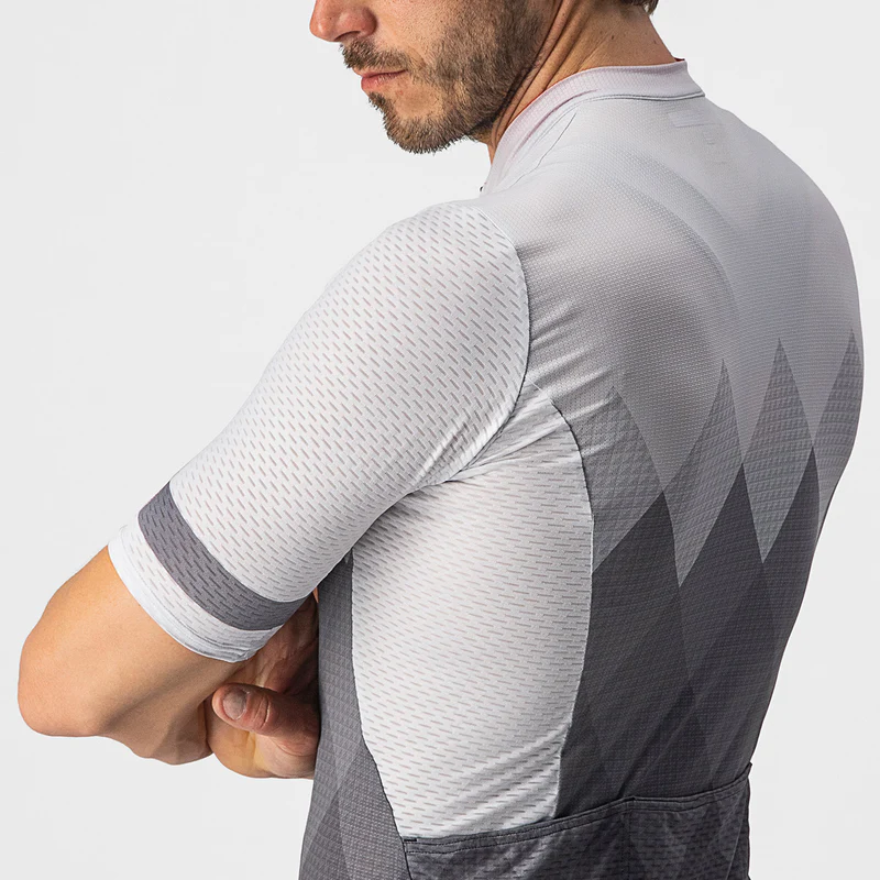 Градиентното избледување низ дијамантскиот шаблон носи нова графика на дресот изграден на нашиот модел Competizione 2. Тоа е идеална сеопфатна маичка за целото ваше возење, која нуди удобност при тренинзите и брзина при брзи групни возења.
