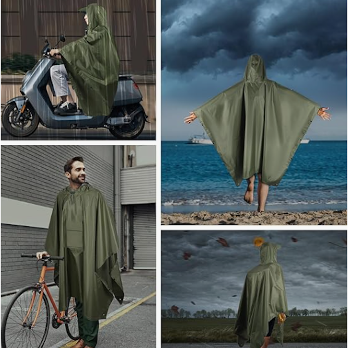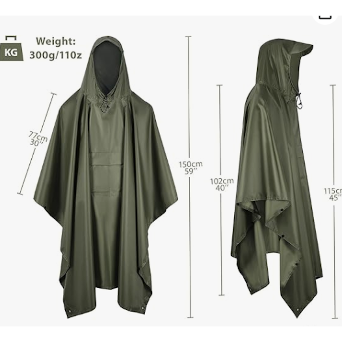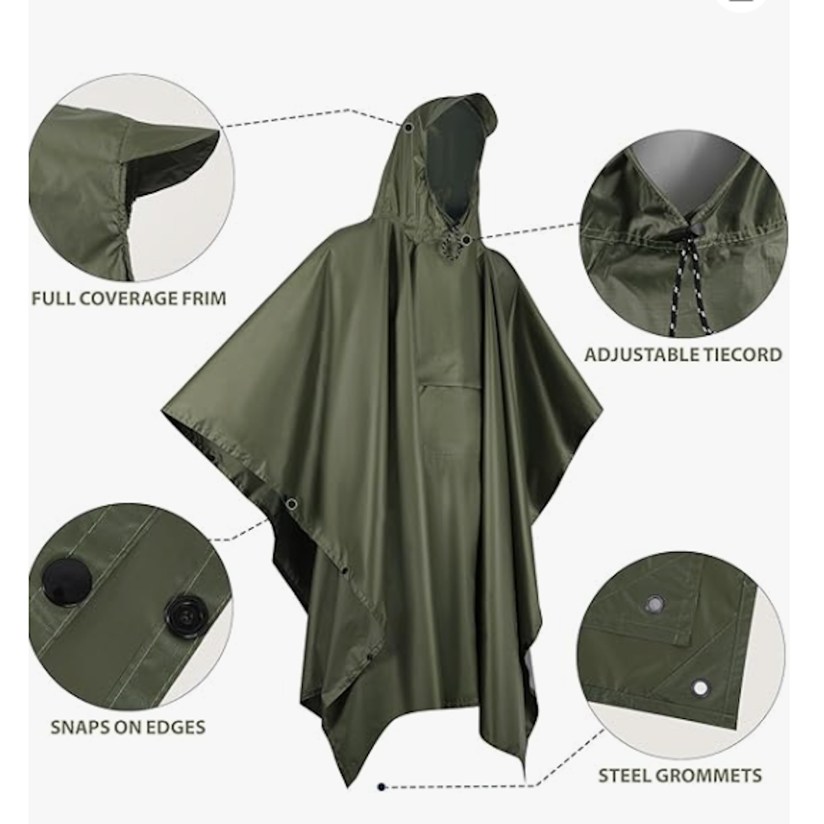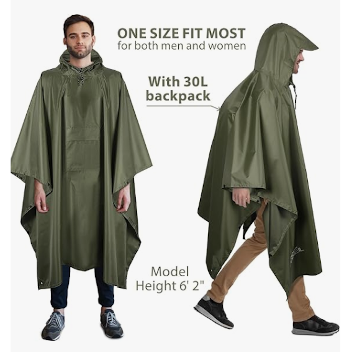 Супер водоотпорен: пончото е направено од 210 полиестерска тафта ткаенина со интегрирана PU облога, супер водоотпорна ткаенина, мека и удобна и е лесна за носење. Ве одржува суви без разлика дали пешачите или возите велосипед