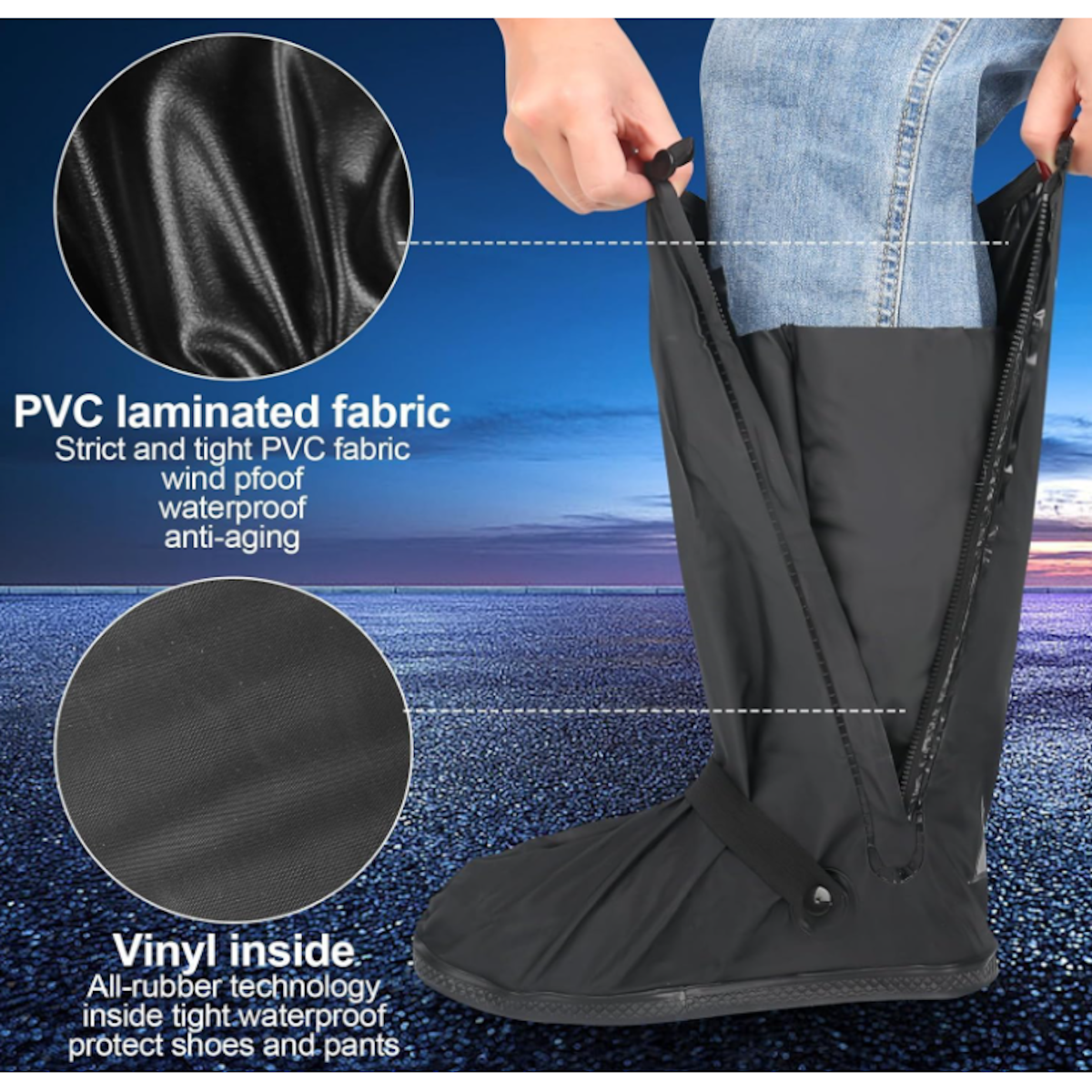‘- Водоотпорна ткаенина со врвен квалитет: Навлаки за чевли се направени од 100% ПВЦ материјал кој е водоотпорен, отпорен на масло, отпорен на прашина кој е во исто време и нелизгав. Навлаките, лесно се чистат и се наменети за повеќекратна употреба.