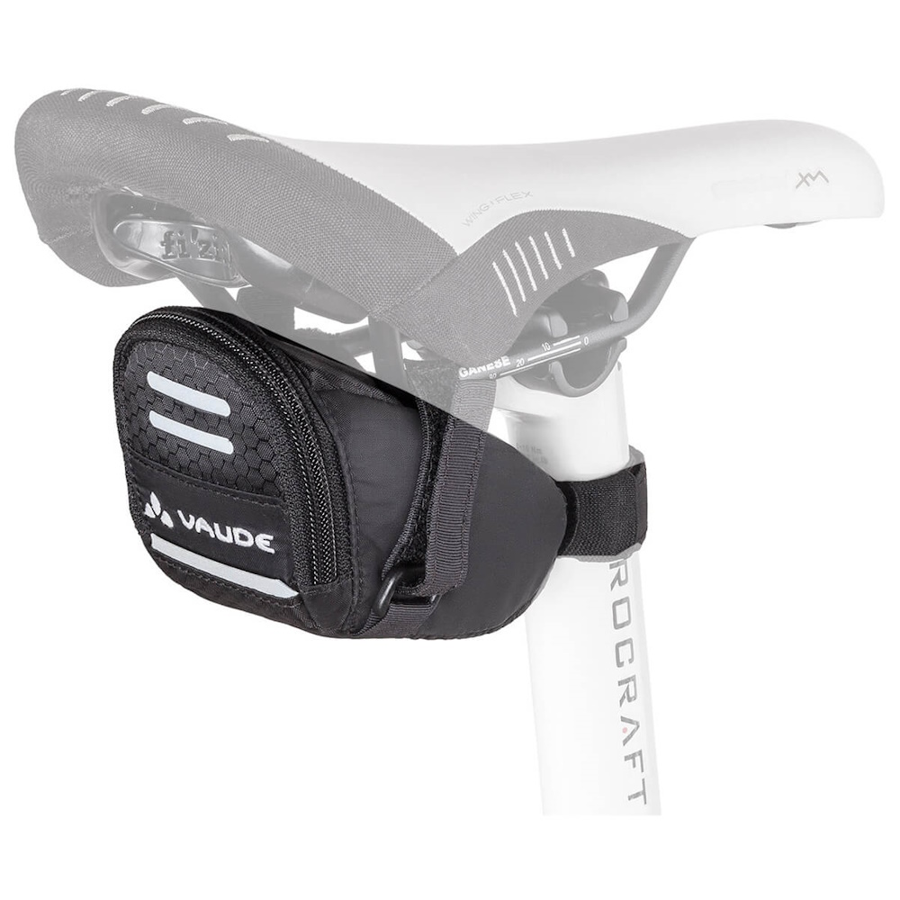 Race Light ташничката за седло од Vaude намерно се чува особено мала. Импресионира со своите својства за заштеда на простор и исклучително лесни својства. Нуди простор за најпотребниот прибор, кој може да се чува во два мали внатрешни џебови. Мала е, заштедува простор и е исклучително лесна.